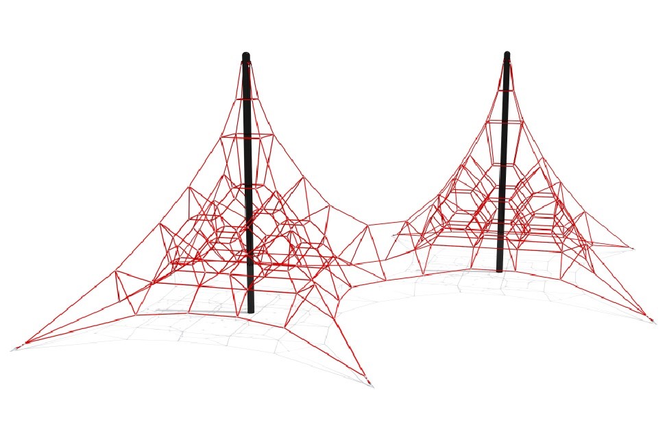 Rete realizzata con cavi composti ciascuno da 61 fili in acciaio, palo in acciaio zincato