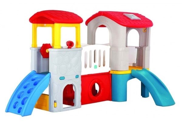 Villetta con ponte, arrampicata, scivolo, timone e canocchiale